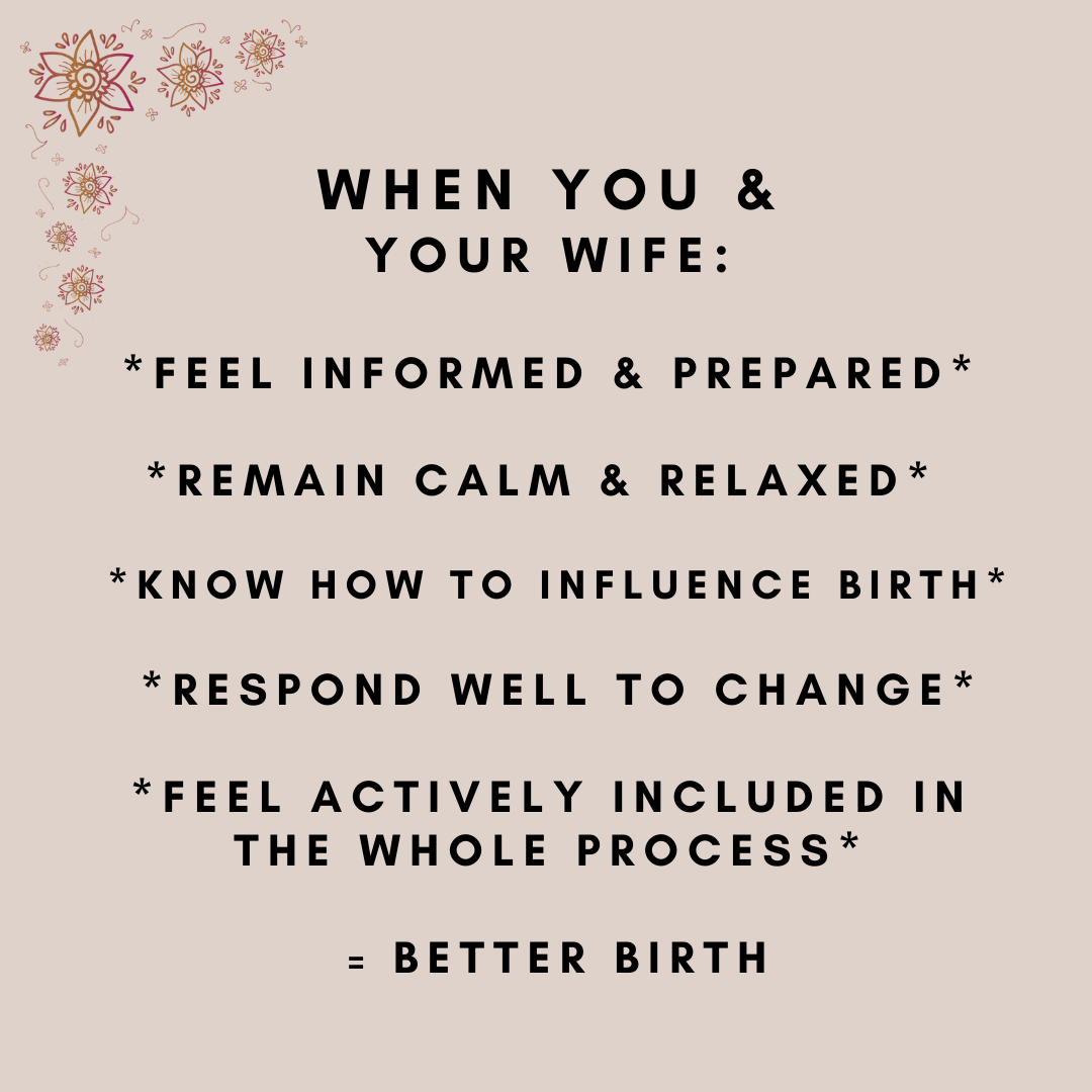 3) How prepared you are for what might happen: if you respond with fear, worry and tension your wife can sense that. You need to be supportive, calm, informed.